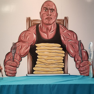The best photo op was the food tower. Now how did we climb to the top, (shh it's done with mirrors). It makes for awesome pictures.