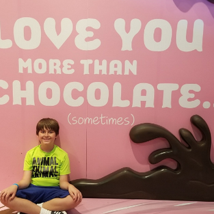 Oh, the chocolate room was next along with the popcorn room. It was so much fun to be silly and interact with all the photo ops. Where else can you ride or walk with a hot dog?